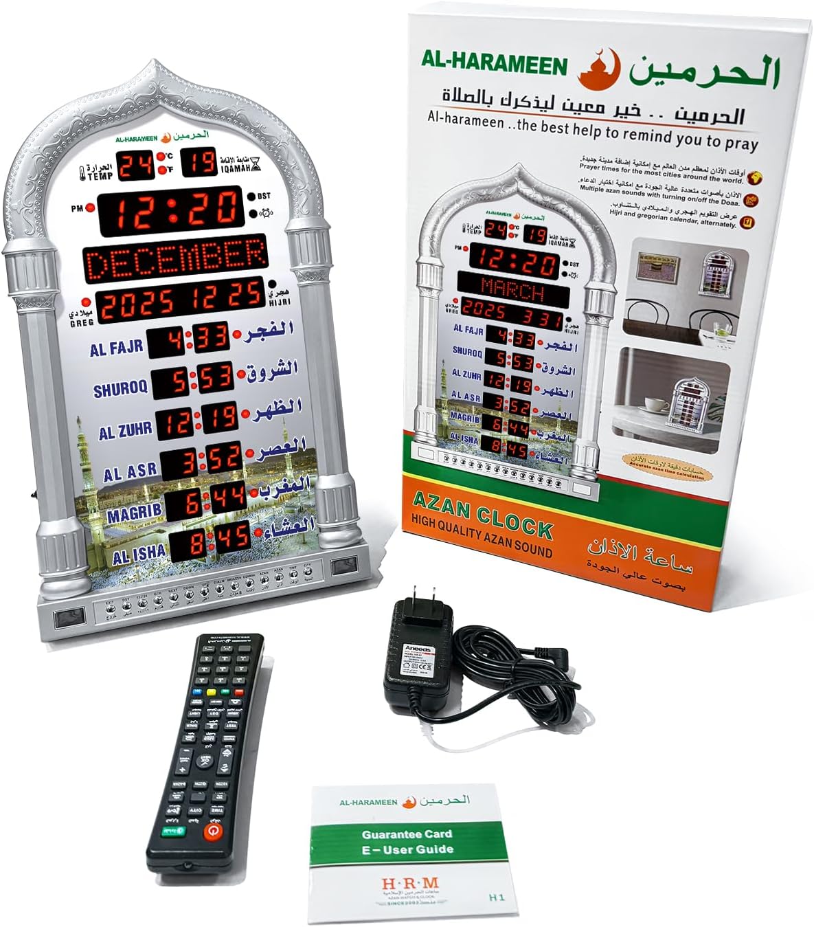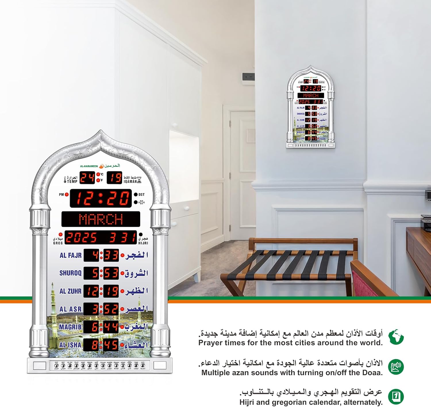 الحرمين ساعة اذان كبيرة للمنزل او المسجد مع شاشة مضيئة الحجم 23/40 (رمادي) HA-4008 1