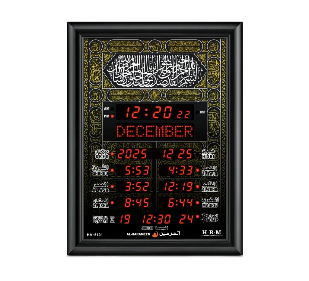 الحرمين ساعة اذان كبيرة للمنزل او المسجد مع شاشة مضيئة الحجم 23/40 (دهبي)HA-4008