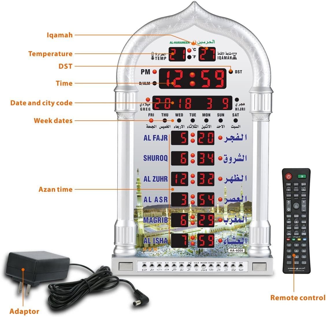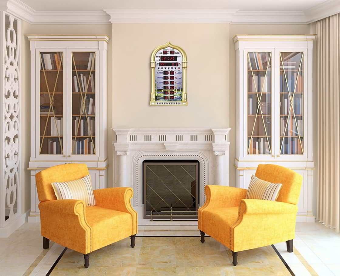 Cette horloge digitale de prière est conçue pour répondre aux besoins des utilisateurs modernes. Avec son affichage numérique clair, elle permet une lecture facile à distance. Son alarme intégrée est spécialement conçue pour vous réveiller au bon moment pour les prières, assurant que vous ne manquiez jamais un moment important de votre journée. Fonctionnant à l’électricité, elle est idéale pour une utilisation continue dans votre maison, bureau ou mosquée. Le cadre en aluminium apporte non seulement une touche de modernité à votre espace, mais assure également une durabilité remarquable. Le cadran doré ajoute une touche d’élégance, rendant cet appareil non seulement fonctionnel, mais aussi esthétique. Cette horloge est un excellent choix pour ceux qui recherchent un produit pratique et s’intégrant parfaitement dans leur environnement, que ce soit à la maison ou dans un cadre professionnel. En associant style et fonctionnalité, cette horloge répond aux attentes des utilisateurs soucieux de leur décoration intérieure tout en restant pratique pour les horaires de prière.