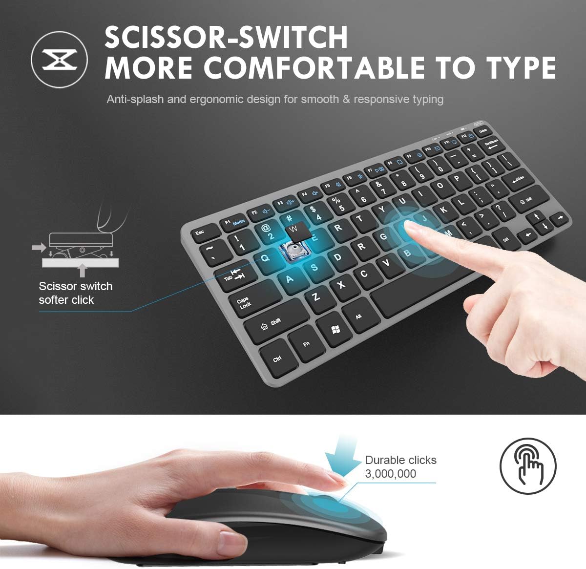 Le kit de clavier et souris sans fil ultra fin est conçu pour offrir une expérience de bureau propre et organisée grâce à sa connexion sans fil. Il utilise une technologie avancée permettant de se débarrasser des câbles encombrants, tout en utilisant un récepteur USB compact qui assure une portée stable et une connexion sans faille. Ce kit est équipé d’une batterie lithium-polymère intégrée, capable de se recharger en environ deux heures et d’offrir une utilisation prolongée pour plusieurs mois, éliminant ainsi le besoin de remplacer les piles régulièrement. En mode veille, le clavier et la souris s’éteignent automatiquement après quelques minutes d’inactivité, contribuant à l’économie d’énergie. La souris dispose de trois réglages de DPI, ce qui permet d’ajuster la vitesse en fonction des besoins de l’utilisateur, rendant le suivi sur différentes surfaces plus agréable et efficace. De plus, les douze touches multimédia sur le clavier facilitent l’accès à divers médias et optimisent le temps de travail. Avec une conception ultra fine et élégante, ce kit est non seulement portable mais aussi conçu pour réduire le bruit lors de l’utilisation, ce qui en fait un choix idéal pour les bibliothèques ou d’autres espaces calmes. La finition en métal et la qualité de fabrication garantissent une durabilité et une ergonomie supérieures, rendant l’utilisation quotidienne confortable.