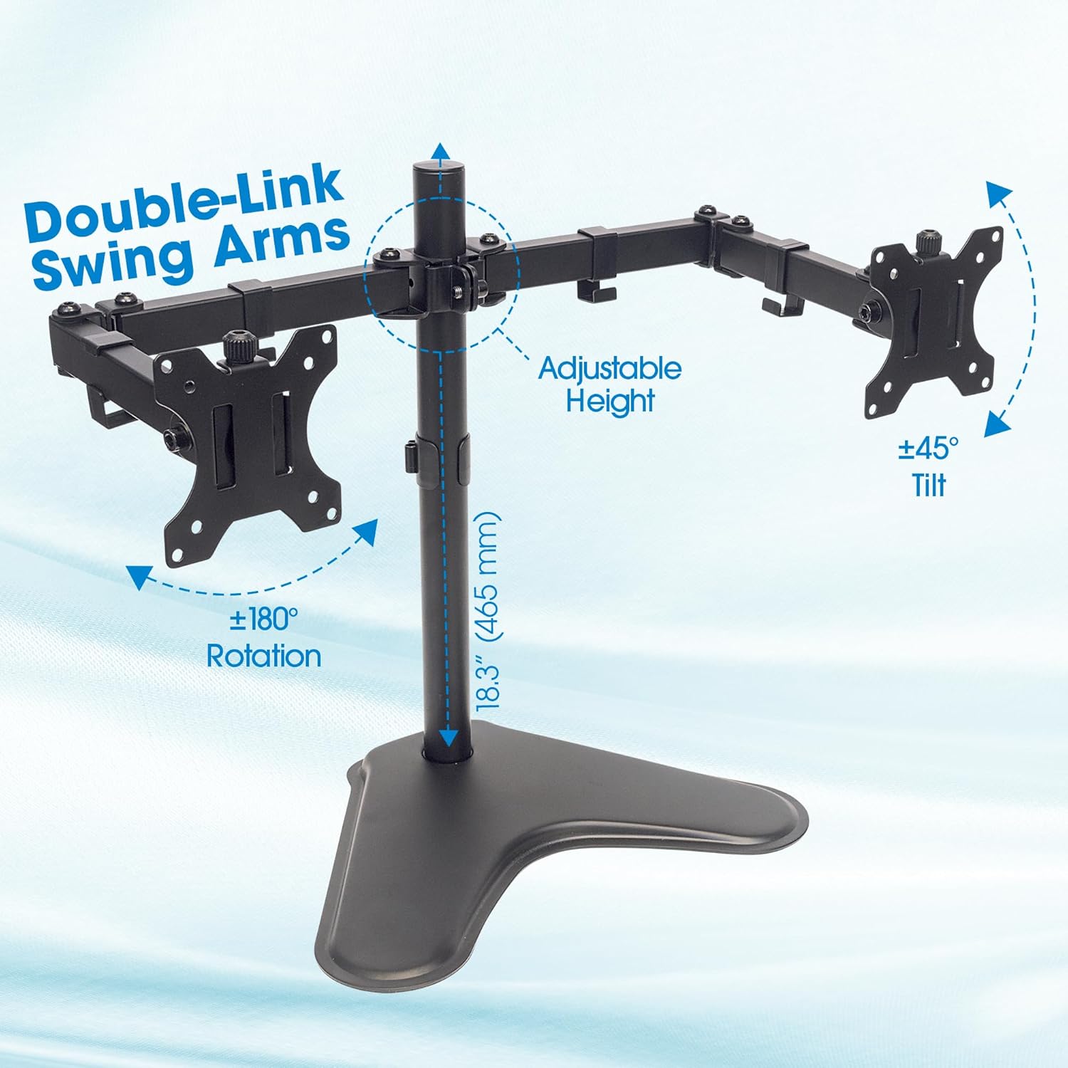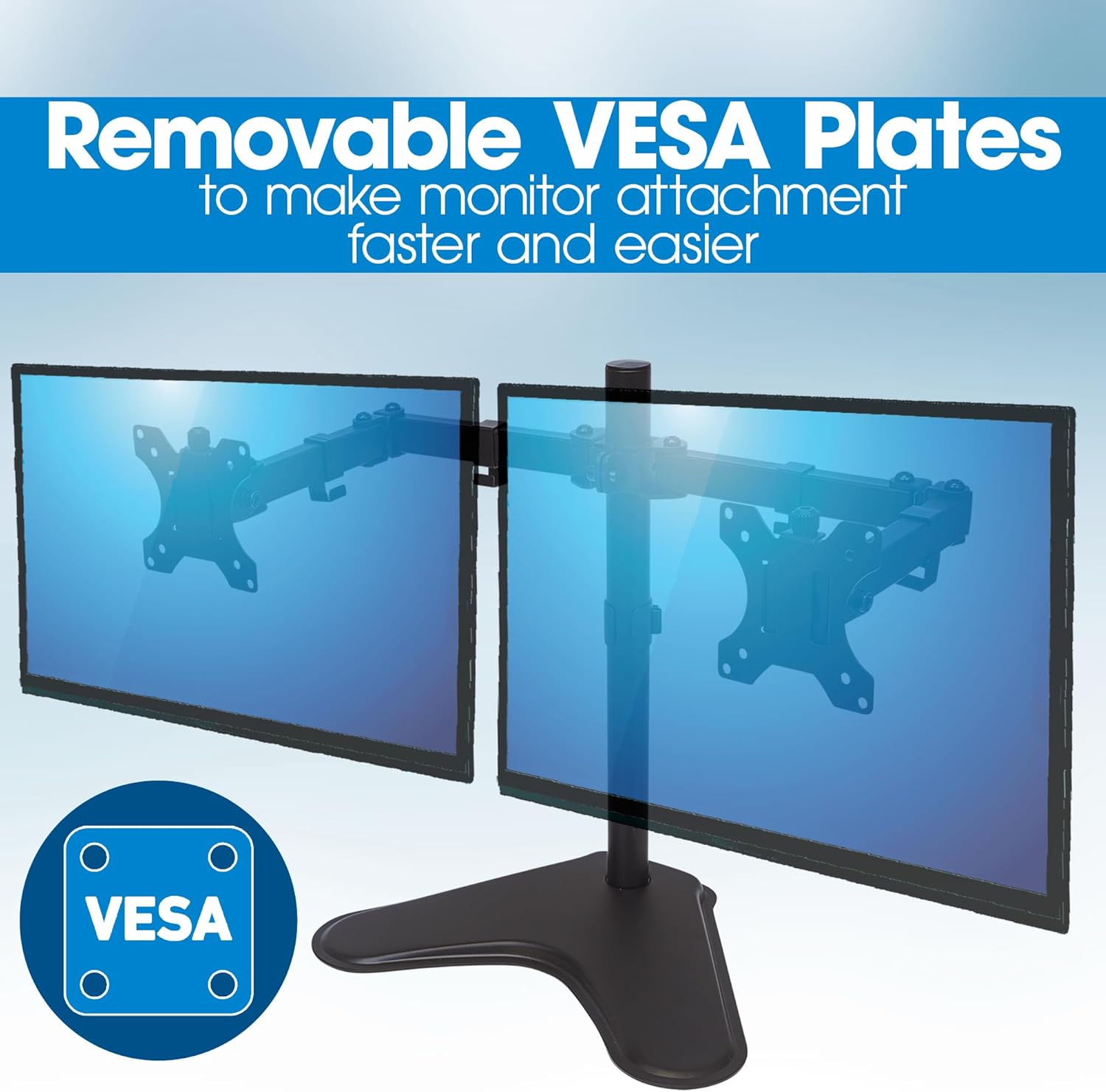 - Compatible avec les écrans VESA, adapté pour deux moniteurs avec montage sécurisé.
