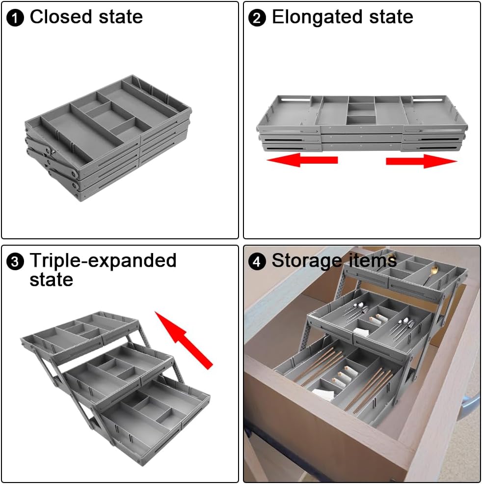 La conception améliorée comprend une double ligne, ce qui renforce la stabilité de l’organisateur et permet de supporter une charge importante sans risque de chute. Vous pouvez ainsi stocker vos objets en toute confiance. Pour ceux qui cherchent à maximiser l’espace dans leurs tiroirs, les compartiments ajustables permettent une configuration personnalisée. Vous pouvez modifier l’organisation en fonction de vos besoins spécifiques, que ce soit pour les fournitures de bureau, les accessoires de cuisine ou les produits cosmétiques.