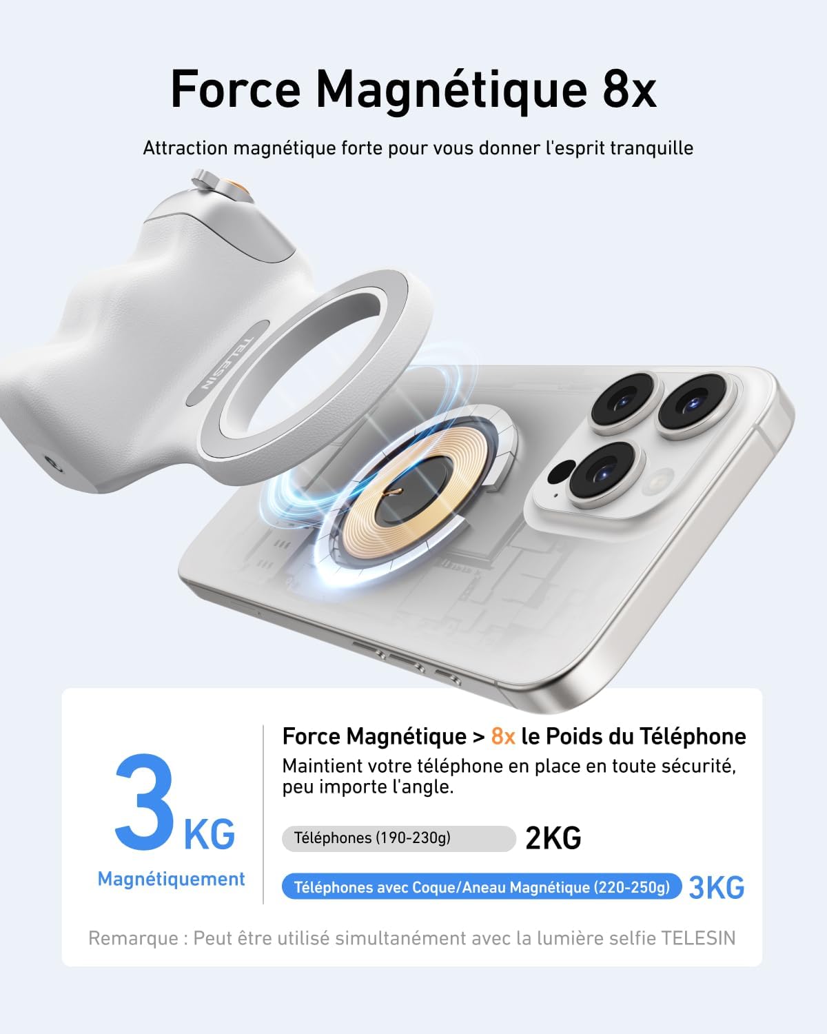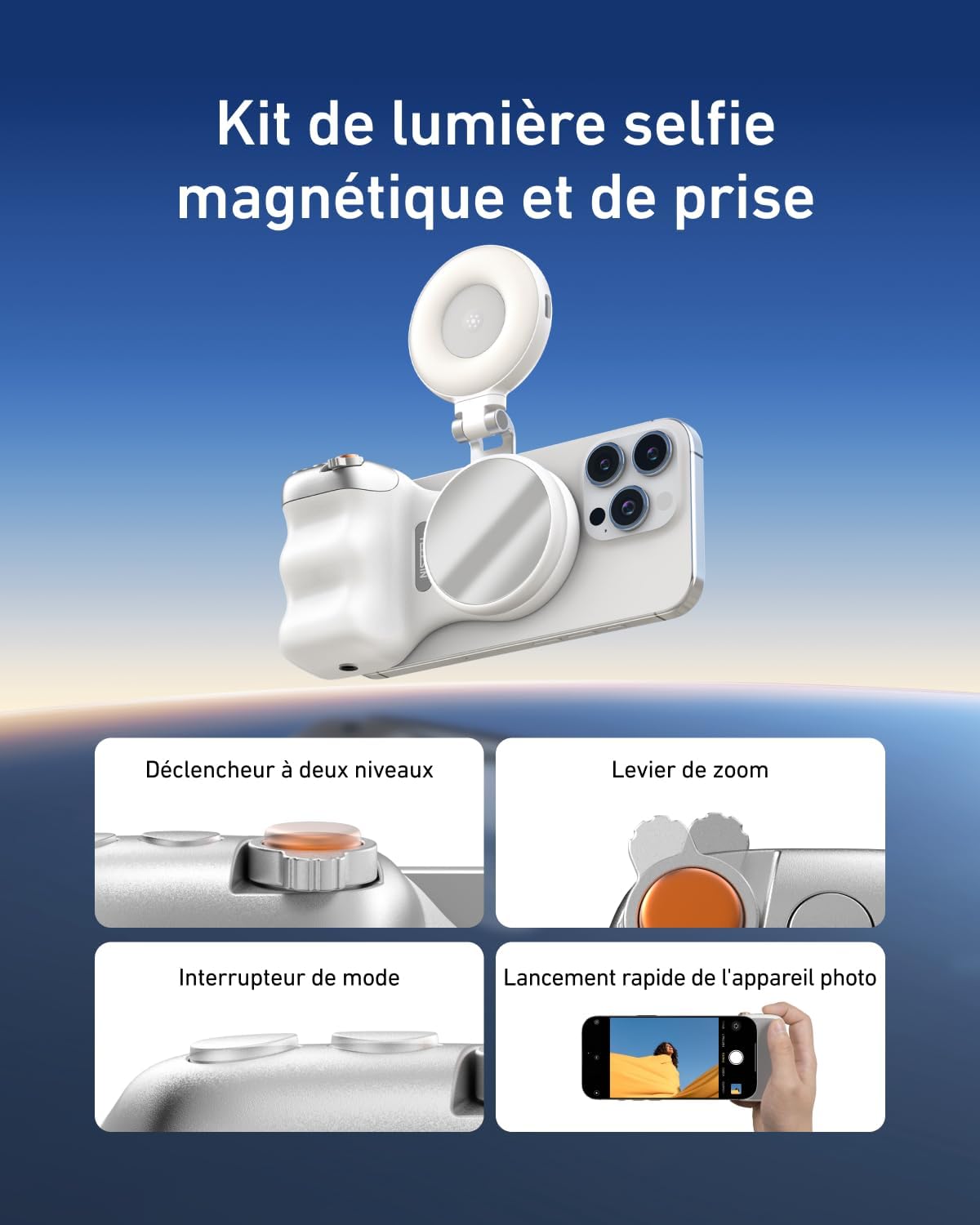 - Montage magnétique adaptable à tous les smartphones, permettant une connexion rapide pour la création de contenu.